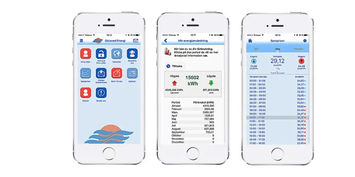 Nu finns vår app att ladda ner. Här kan du bland annat se dina fakturor och förbrukning för el och fjärrvärme. Du kan få driftinformation kring planerade och oplanerade avbrott på el och fjärrvärme samt följa aktuella elpriser (det rörliga spotpriset) timme för timme. Hämta appen på App Store eller Google Play.